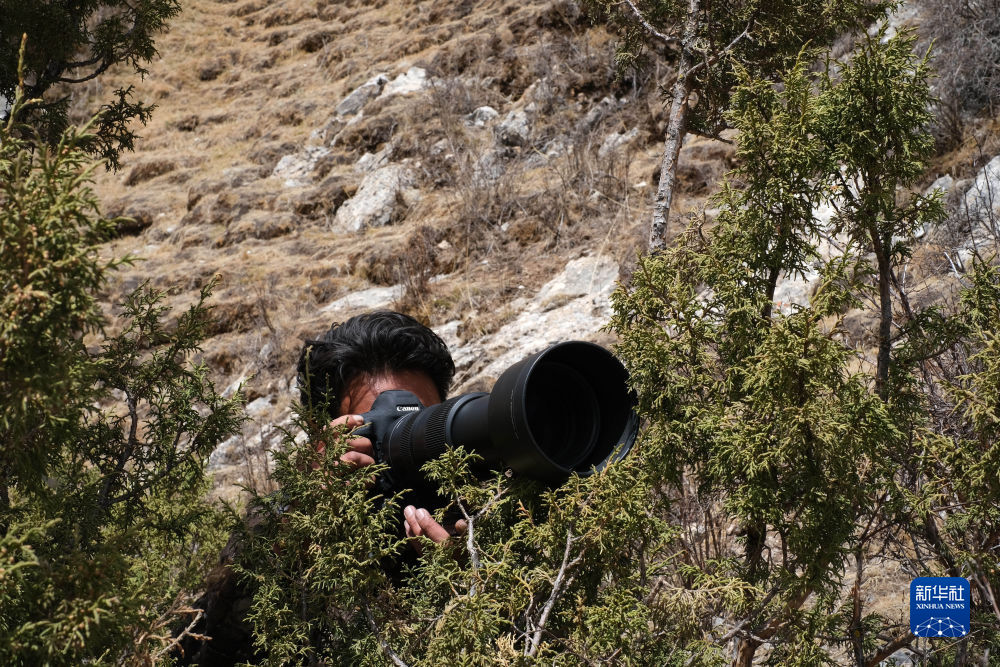 4月22日,生態(tài)管護員達杰在拍攝野生動物。新華社記者 童昊 攝