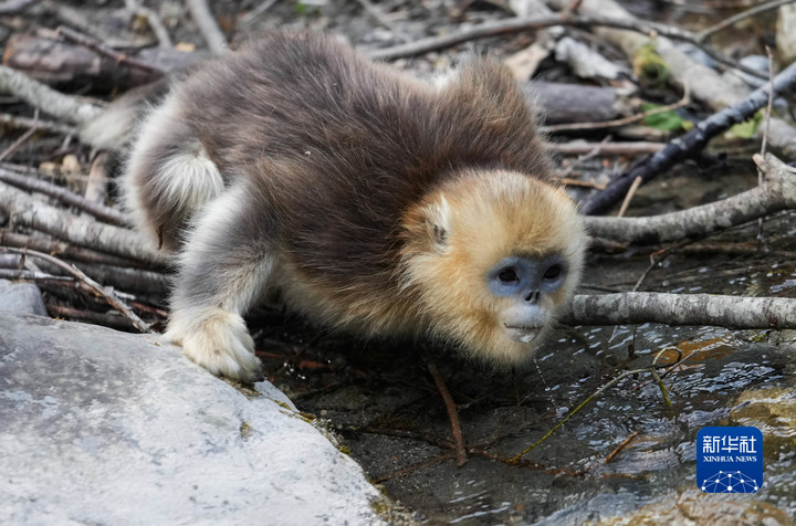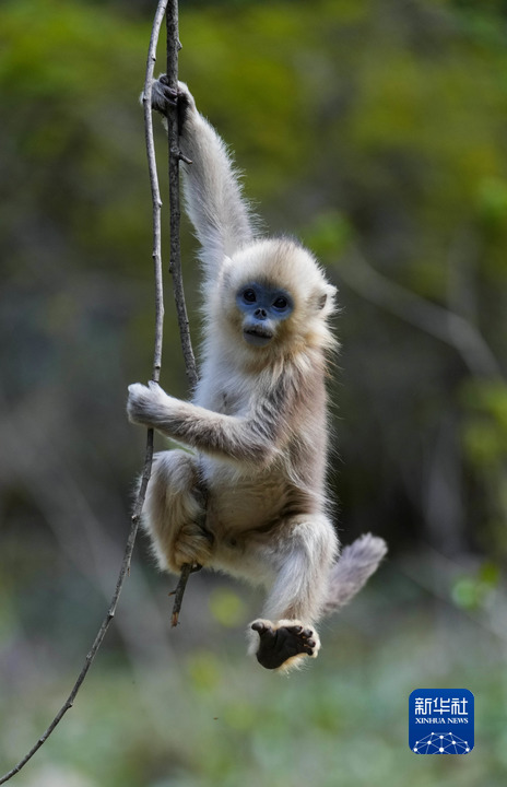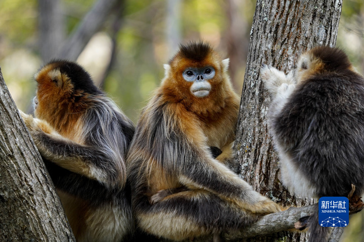 這是4月26日在四川白河國家級(jí)自然保護(hù)區(qū)里拍攝的川金絲猴。新華社記者 江宏景 攝