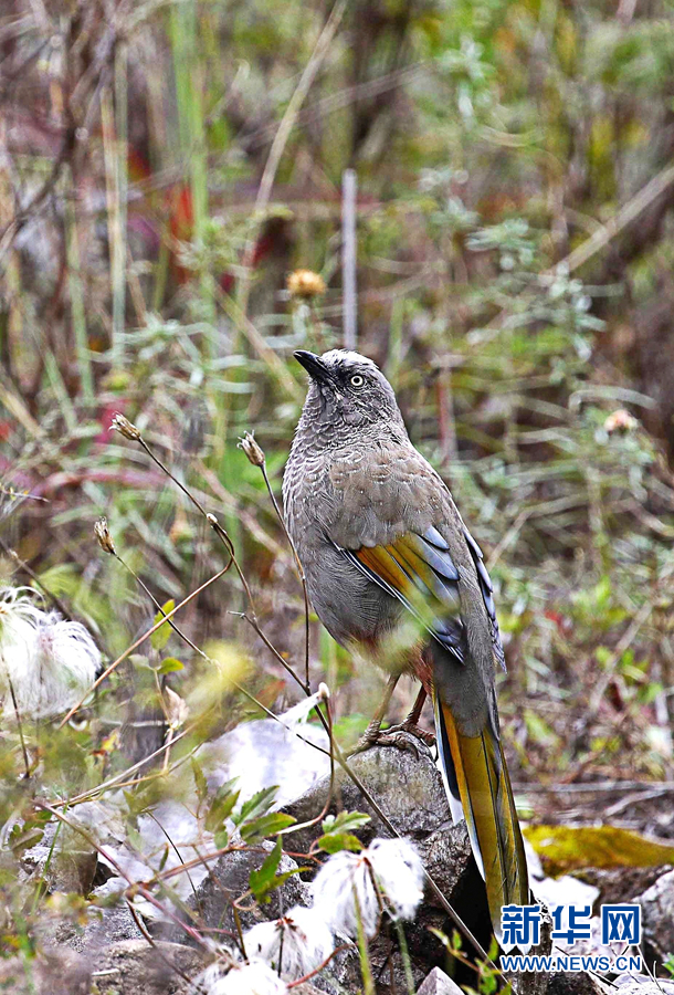 在青海省玉樹(shù)藏族自治州通天河畔勒巴溝拍攝到的橙翅噪鹛。