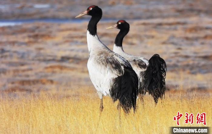 黑頸鶴頻繁“駐足”中國(guó)“鹽湖城”