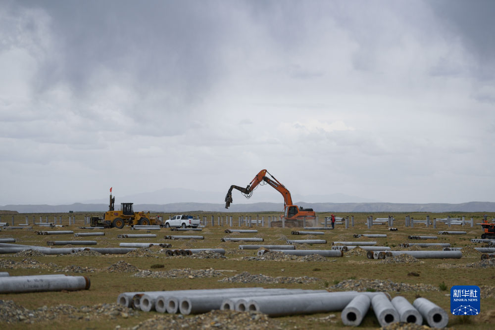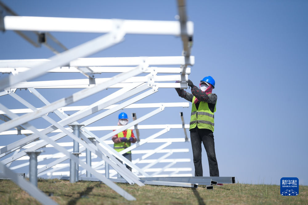 6月8日,工人在黃河上游水電開發(fā)有限責任公司海南基地共和縣100萬千瓦光伏項目現(xiàn)場施工。新華社記者 駱曉飛 攝