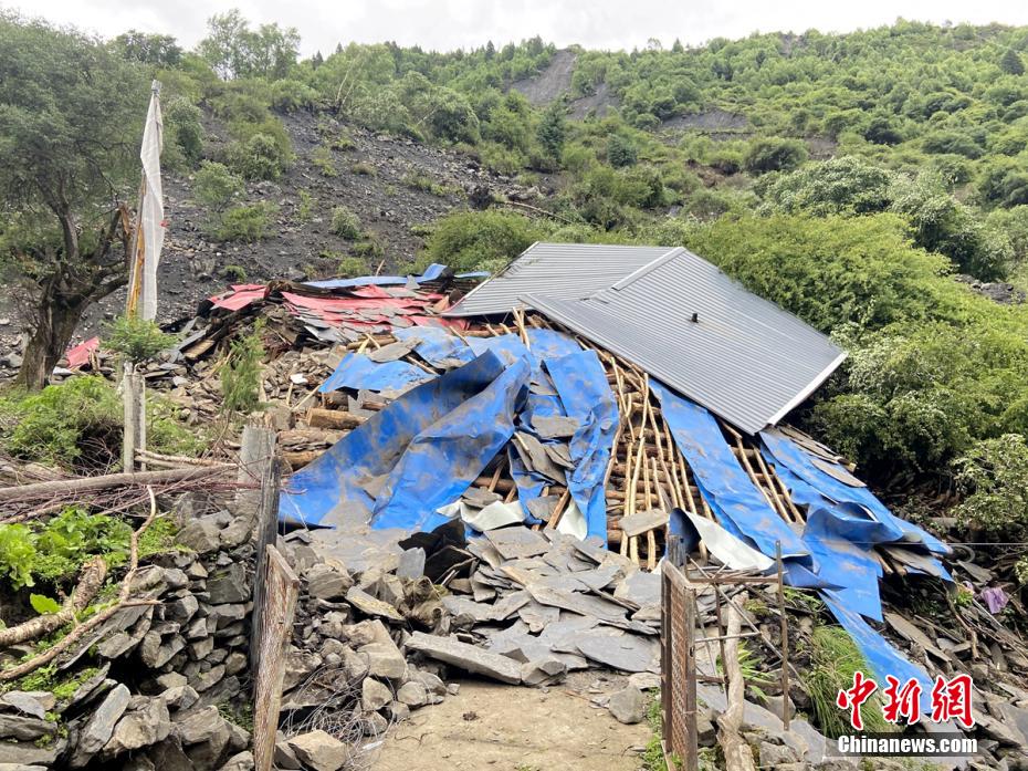 馬爾康市草登鄉(xiāng)科拉機村在地震中倒塌的房屋。 四川森林消防 供圖