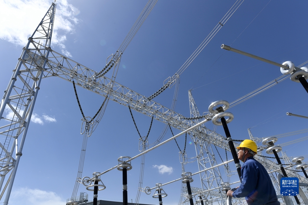這是2021年9月1日拍攝的位于青海省海南藏族自治州共和縣的青豫特高壓輸電線路。新華社記者 解統(tǒng)強(qiáng) 攝