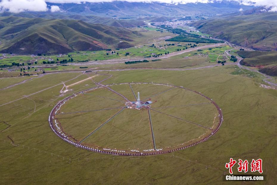 6月29日,四川稻城,空間環(huán)境地基綜合監(jiān)測網(wǎng)(子午工程二期)安裝完成的天線。四川省甘孜州稻城縣境內(nèi),國家重大科技基礎(chǔ)設(shè)施空間環(huán)境地基綜合監(jiān)測網(wǎng)(子午工程二期),正在進行緊張的設(shè)備安裝,預(yù)計2022年底完成天線安裝調(diào)試工作。(無人機照片) 中新社記者 劉忠俊 攝