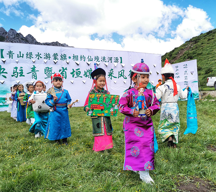 綠草如茵的大草原,成群的牛羊,清澈的洮河水,不時從山頭飄過的朵朵白云,在這樣一副如畫的景色里,河南縣中心幼兒園、賽龍鄉(xiāng)中心寄宿制完全小學的一堂戶外生態(tài)體驗課正在這里進行。
