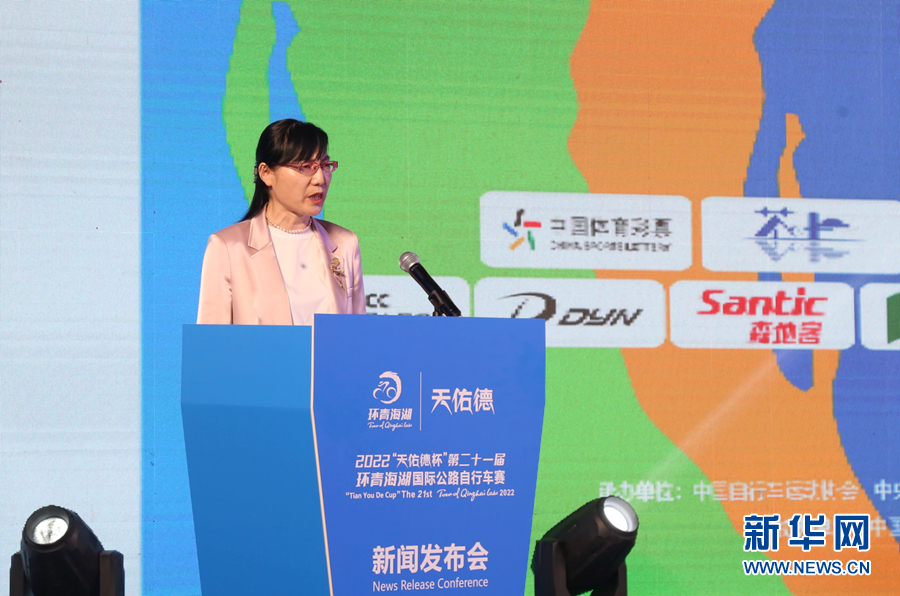 2022第二十一屆環(huán)青海湖國(guó)際公路自行車賽新聞發(fā)布會(huì)現(xiàn)場(chǎng)。新華網(wǎng) 卡婭梅朵 攝