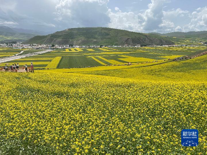 盛夏時(shí)節(jié),從青海省會(huì)西寧出發(fā),沿張汶高速公路驅(qū)車1個(gè)多小時(shí),就進(jìn)入門源回族自治縣境內(nèi)。油菜花鋪展出“金色花?!?,天地間融為一幅濃墨重彩的天然畫卷。