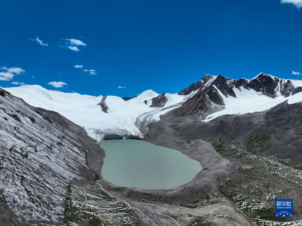 這是7月21日在長江源地區(qū)拍攝的冰川與湖泊(無人機(jī)照片)。新華社記者 張龍 攝
