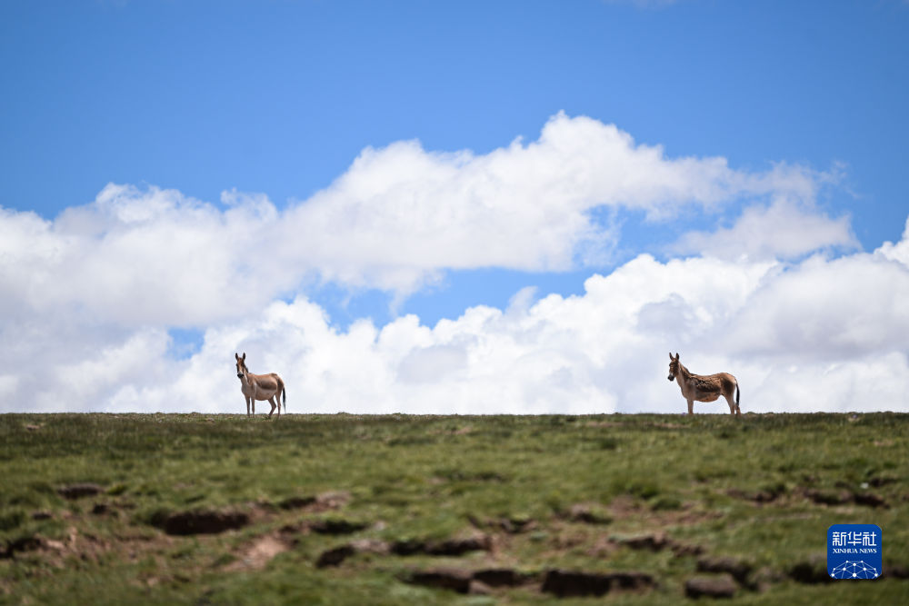 這是7月19日在長江源地區(qū)拍攝的藏野驢。新華社記者 張龍 攝