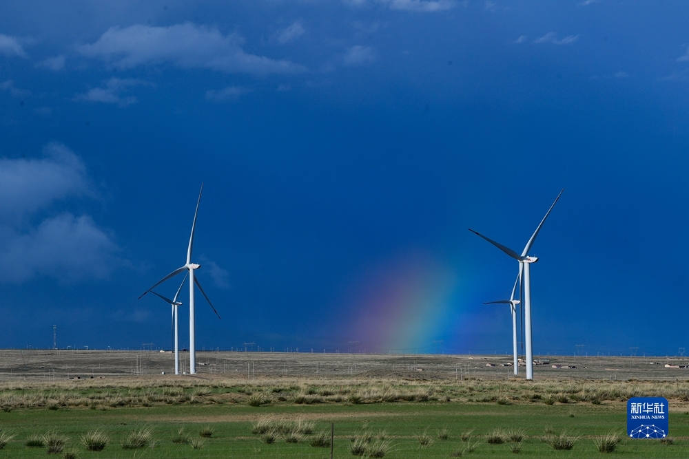 光伏產(chǎn)業(yè)帶動“牧光互補(bǔ)”,昔日塔拉荒灘變成今天綠草茵茵的新牧場。