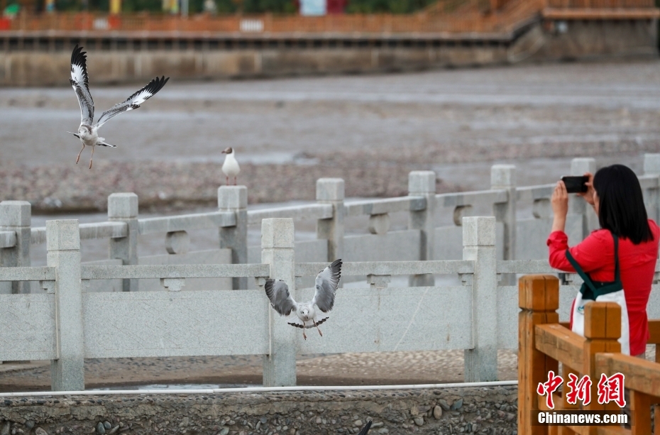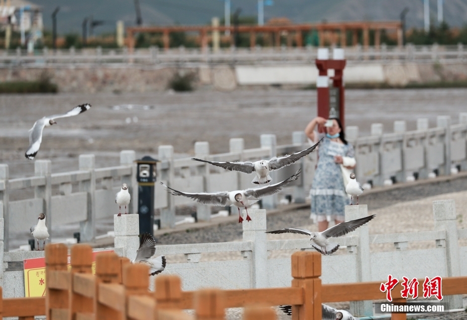 8月11日,青海省海北藏族自治州剛察縣,沙柳河國家濕地公園內(nèi)的大量水鳥吸引游客。中新社記者 賈天勇 攝