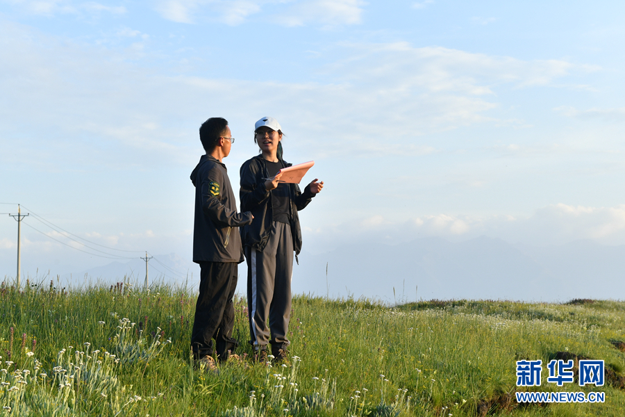孔玥嶠和生態(tài)管護(hù)員正在野外溝通工作。新華網(wǎng) 卡婭梅朵 攝