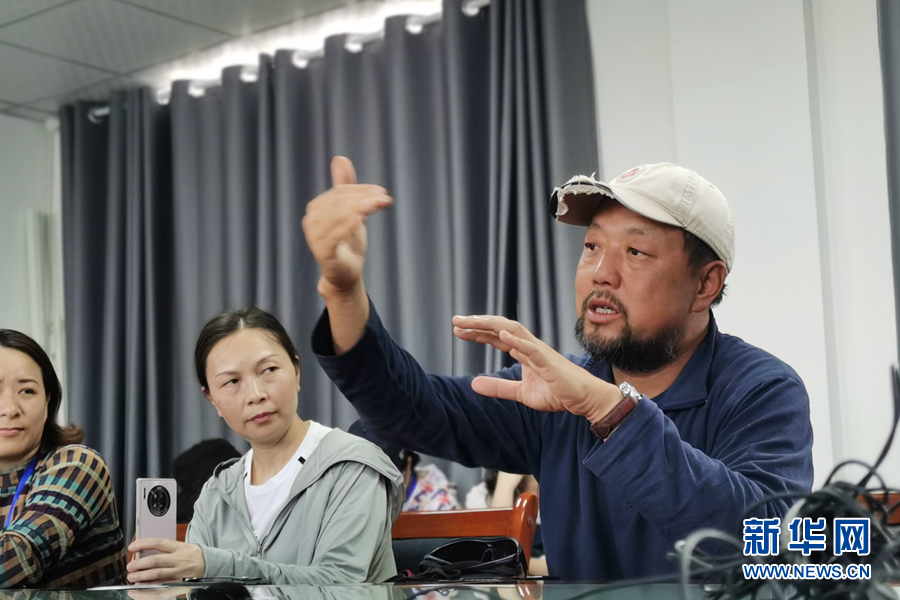 王大軍(右一)正在講述開(kāi)展雪豹衛(wèi)星追蹤工作中的經(jīng)歷。新華網(wǎng)發(fā)