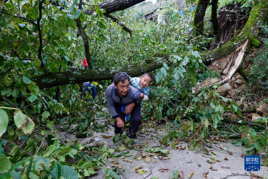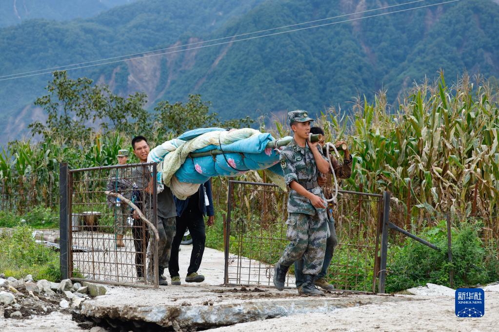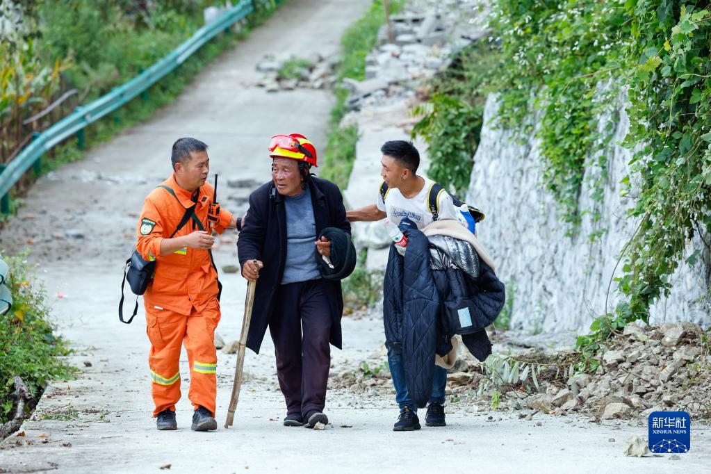 9月6日,瀘定縣得妥鎮(zhèn)灣東村村民向外疏散。新華社記者 沈伯韓 攝