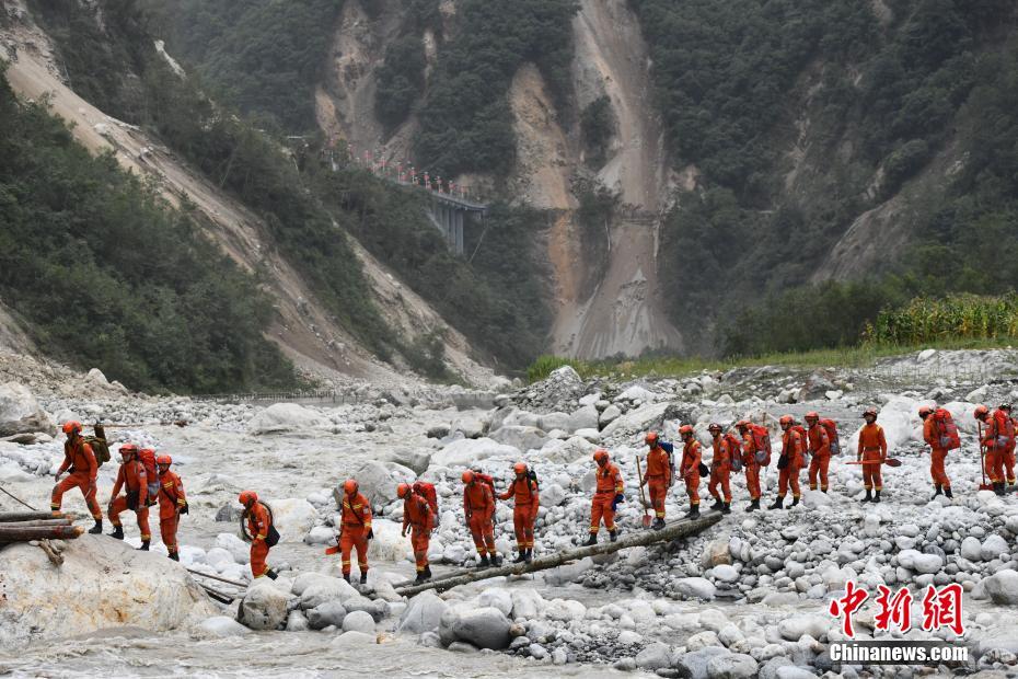 9月6日,四川甘孜州瀘定縣磨西鎮(zhèn),甘孜州森林消防支隊康定中隊隊員徒步深入山區(qū)開展救災工作。9月5日,四川瀘定發(fā)生6.8級地震。 中新社記者 張浪 攝