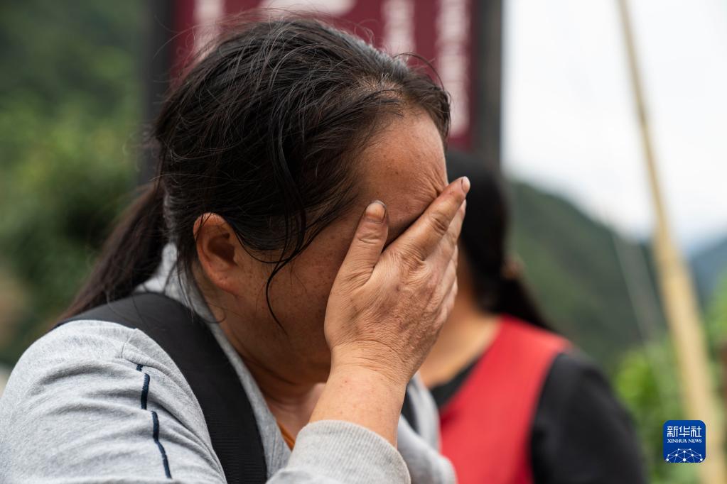 9月7日,在雅安市石棉縣王崗坪彝族藏族鄉(xiāng)幸福村二組,一名村民在哭泣。新華社記者 才揚 攝