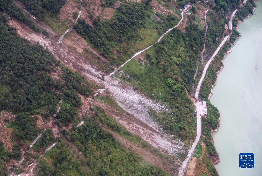 這是9月7日拍攝的雅安市石棉縣王崗坪彝族藏族鄉(xiāng)幸福村二組附近的照片,能看到山體多處滑坡(無人機照片)。新華社記者 才揚 攝