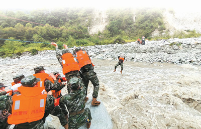 一幕幕救援場(chǎng)景,令億萬(wàn)網(wǎng)友動(dòng)容:面對(duì)湍急的河水,特警隊(duì)員用身體和繩索搭起“生命橋”,全力轉(zhuǎn)移被困群眾;面對(duì)橋梁垮塌,森林消防員自制擔(dān)架、木橋,抬傷員過(guò)河……