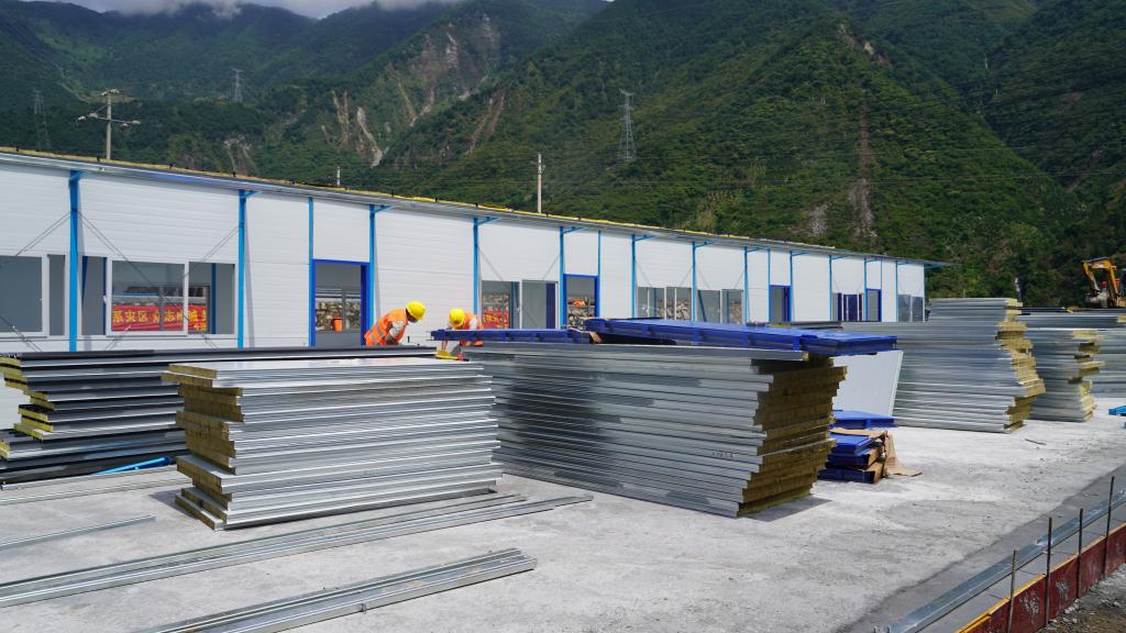 在得妥鎮(zhèn)天池山村繁榮集中過渡安置點(diǎn)工地里,200多名施工人員正在抓緊進(jìn)行安置點(diǎn)的板房安裝?!澳壳拔覀円淹瓿?20套板房安裝,預(yù)計(jì)受災(zāi)群眾可于10月初入住?!笨偝邪鼏挝蝗A西集團(tuán)四川省建筑機(jī)械化工程有限公司項(xiàng)目負(fù)責(zé)人王偉介紹,該安置點(diǎn)還將配備公共衛(wèi)生間、公共浴室、廚房、健身器材等設(shè)施,為受災(zāi)群眾在過渡安置期間創(chuàng)造安全便利的生活條件。