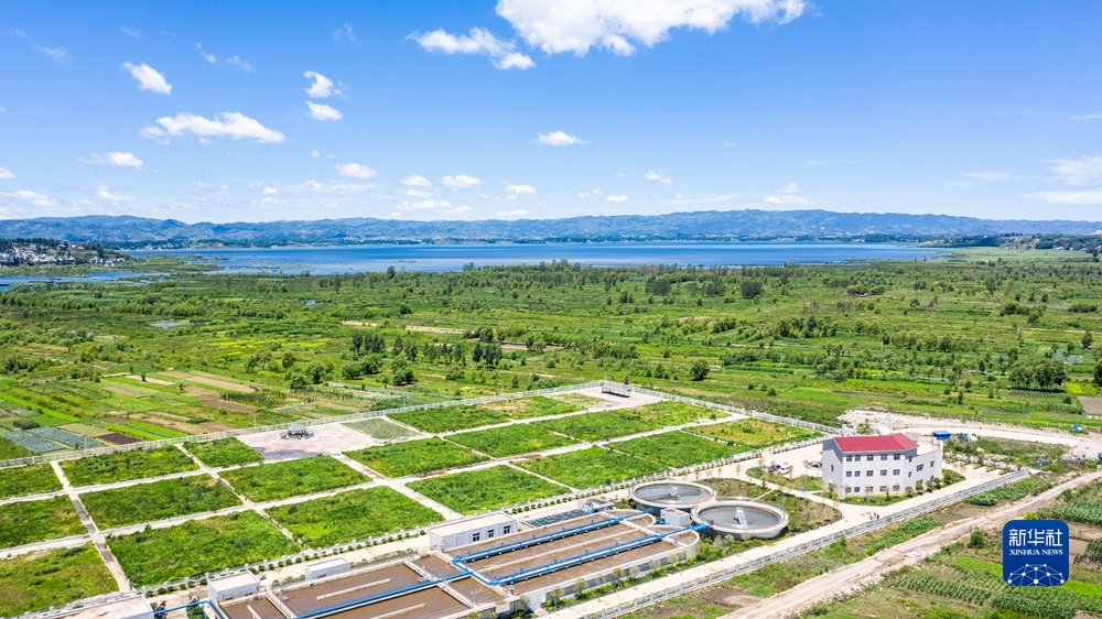 這是貴州草海國家級自然保護(hù)區(qū)的萬噸生活污水處理廠(2019年6月20日攝,無人機(jī)照片)。新華社記者 陶亮 攝