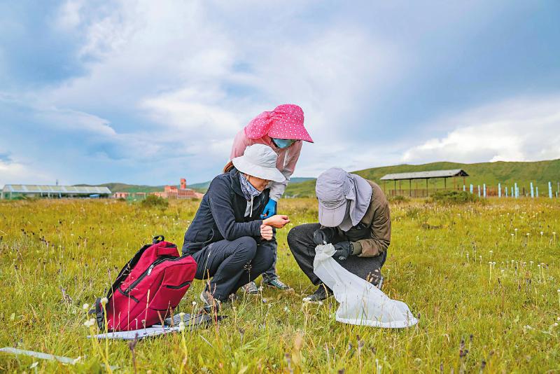 南京大學(xué)張玉霞博士和研究團(tuán)隊(duì)在四川若爾蓋高寒濕地生態(tài)系統(tǒng)國家野外科學(xué)觀測研究站開展昆蟲研究。本版圖片均由四川日?qǐng)?bào)全媒體記者 李強(qiáng) 攝