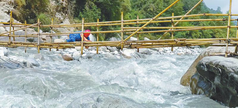 四川省青年應(yīng)急志愿服務(wù)總隊(duì)雷波大隊(duì)隊(duì)員們搭建鋼架橋。本版圖片均由受訪者提供