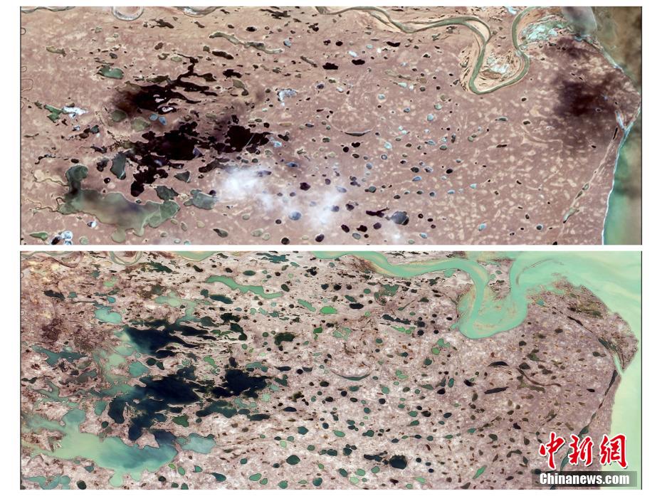 圖為青海省南部星宿海2013年(上圖)和2022年(下圖)“千湖美景”對比。劉錦秀 供圖