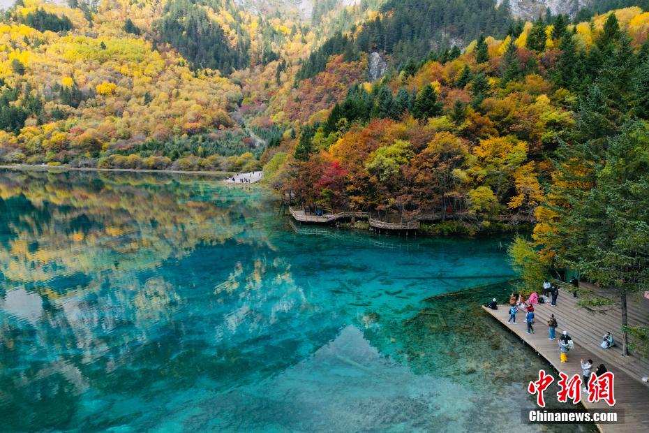 10月23日,深秋時節(jié),四川九寨溝如同油畫一般,漫山遍野的紅葉絢麗多彩,與清澈見底的湖水交相輝映,美輪美奐,“秋日童話”正上演。 張浪 攝