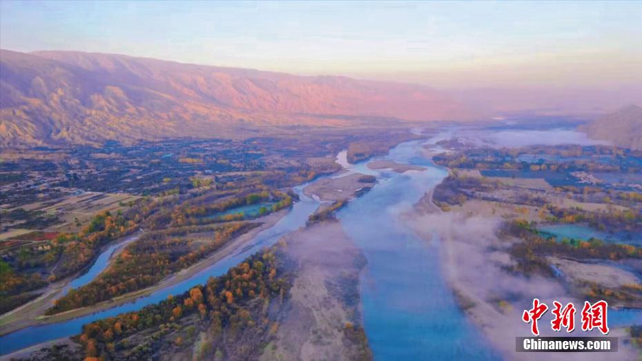 深秋時(shí)節(jié),享有“天下黃河貴德清”美譽(yù)的青海省貴德縣秋意正濃。黃河岸畔,一層層薄霧如飄紗籠罩河面,碧波蕩漾的黃河水與兩岸樹(shù)林、農(nóng)田、丹霞地貌交相輝映,美景如畫。青海省是中華民族母親河黃河的發(fā)源省,黃河流經(jīng)貴德76.8公里。貴德縣融媒體中心 供圖