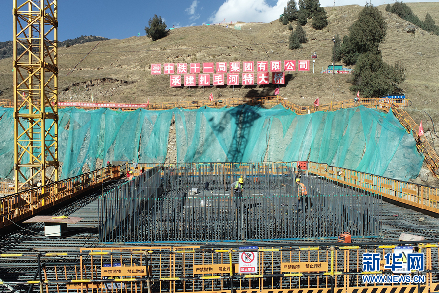 11月7日,這是同賽公路扎毛河特大橋左幅10#墩承臺澆筑現(xiàn)場。
