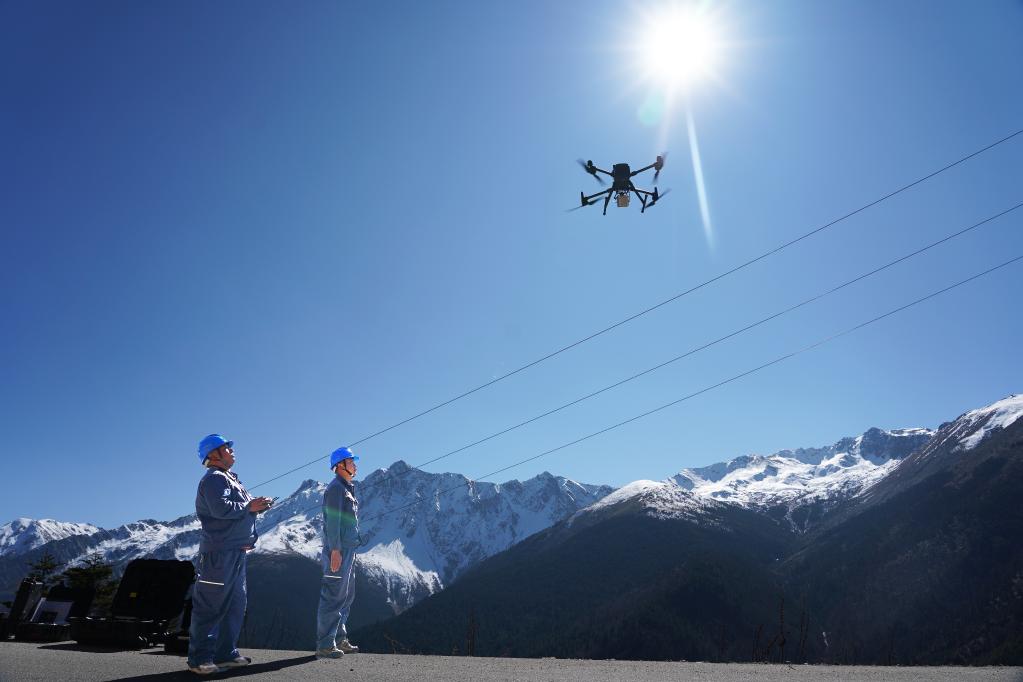 2022年11月17日,無人機(jī)在梅里雪山巡檢。(受訪者供圖)