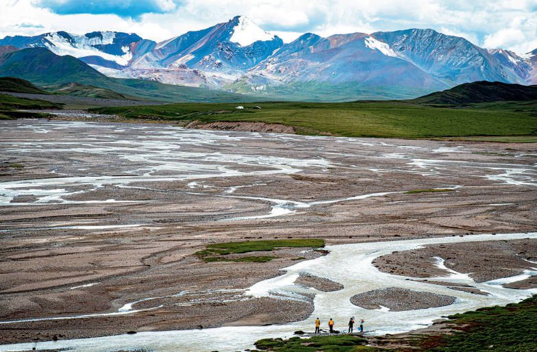 長(zhǎng)江科學(xué)院的科考隊(duì)員在長(zhǎng)江源區(qū)進(jìn)行科考工作(2022年7月26日攝)肖藝九 攝 / 本刊