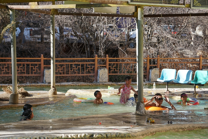 春節(jié)假期,帶上家人、朋友泡個溫泉,成為了不少迪慶人歡度新春必不可少的“儀式”。隨著近幾年“溫泉“經(jīng)濟(jì)的發(fā)展,老百姓泡溫泉幾乎成了家家喜聞樂見的放松方式。大年初五,天生橋就擠滿了前來泡溫泉的老百姓。男女老少,歡聲笑語,享受春節(jié)假日里全家出游的開心與快樂。