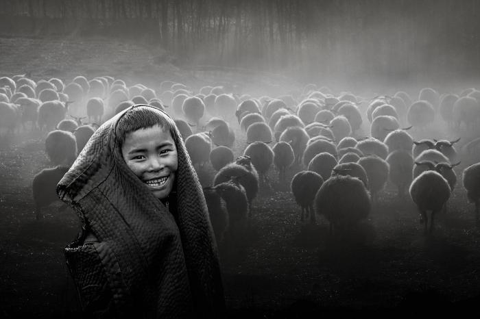 圖為焦生福作品《開心的羊倌》。青海省祁連山自然保護(hù)協(xié)會供圖