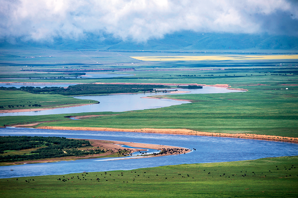 牛羊徜徉在四川若爾蓋濕地國(guó)家級(jí)自然保護(hù)區(qū)里(2022年7月25日攝)。新華社 江宏景 攝