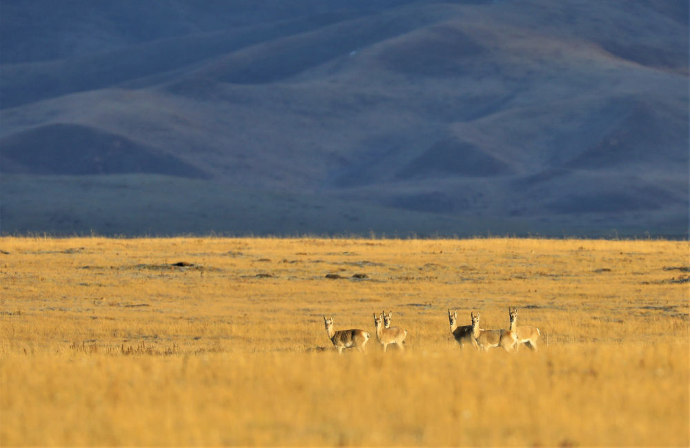 一群藏原羚在四川若爾蓋濕地國(guó)家級(jí)自然保護(hù)區(qū)里徜徉(2020年10月24日攝)。新華社 王冀川 攝
