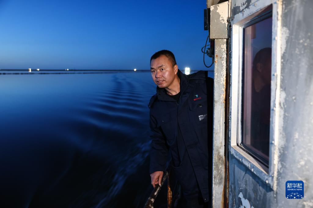 2月2日晚間,賀連福在水采船上巡檢。新華社記者 劉金海 攝