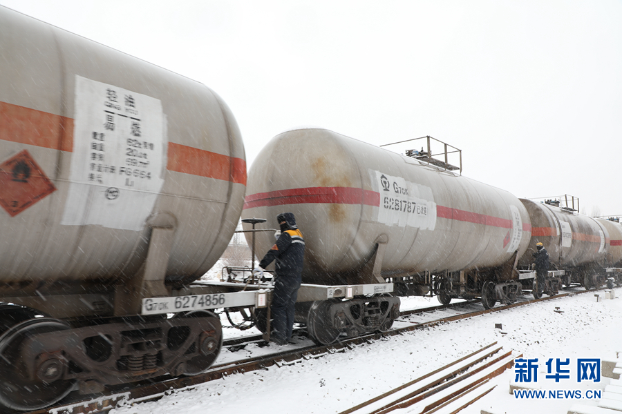 列檢人員對(duì)貨運(yùn)列車進(jìn)行檢查。新華網(wǎng) 馬建林 攝