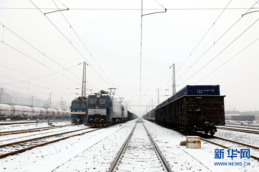 調(diào)車人員在雪中進(jìn)行調(diào)車作業(yè)。新華網(wǎng) 鐵萬(wàn)鋼 攝
