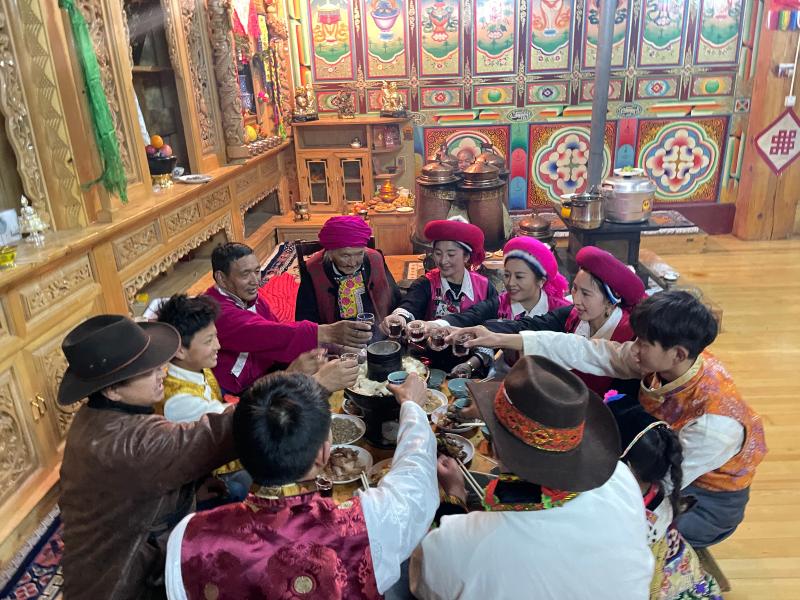 在濃厚的新年氛圍里,初稱(chēng)心頭的幸福感滿(mǎn)滿(mǎn):“這幾年,在黨的好政策指引下,我們的日子真的越來(lái)越好了,去年家里經(jīng)營(yíng)的房車(chē)營(yíng)地賺了4萬(wàn)多元,女兒在外打工,兩個(gè)孫子都在讀大學(xué),老母親身體健康,生活不用發(fā)愁……話(huà)語(yǔ)間,生活過(guò)得越來(lái)越滋潤(rùn)的一家人舉起酒杯,“干杯,羅薩扎西德勒!(意為新年吉祥如意)”酒杯碰在一起,發(fā)出清脆的響聲,大家喜慶洋洋的在一起慶新年,說(shuō)祝福,祈愿來(lái)年日子越來(lái)越紅火……