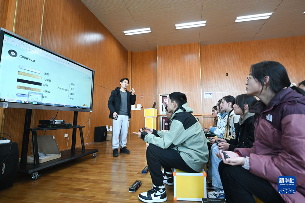 2月23日,上海援青教師闞延俊在給學(xué)生上音樂(lè)課。新華社記者 張龍 攝