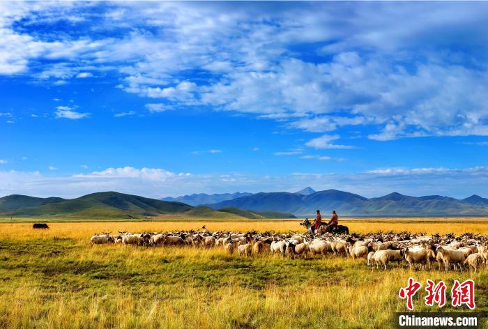 圖為瑪曲縣阿萬倉(cāng)鎮(zhèn)草原牧民在放牧。鐘建龍 攝