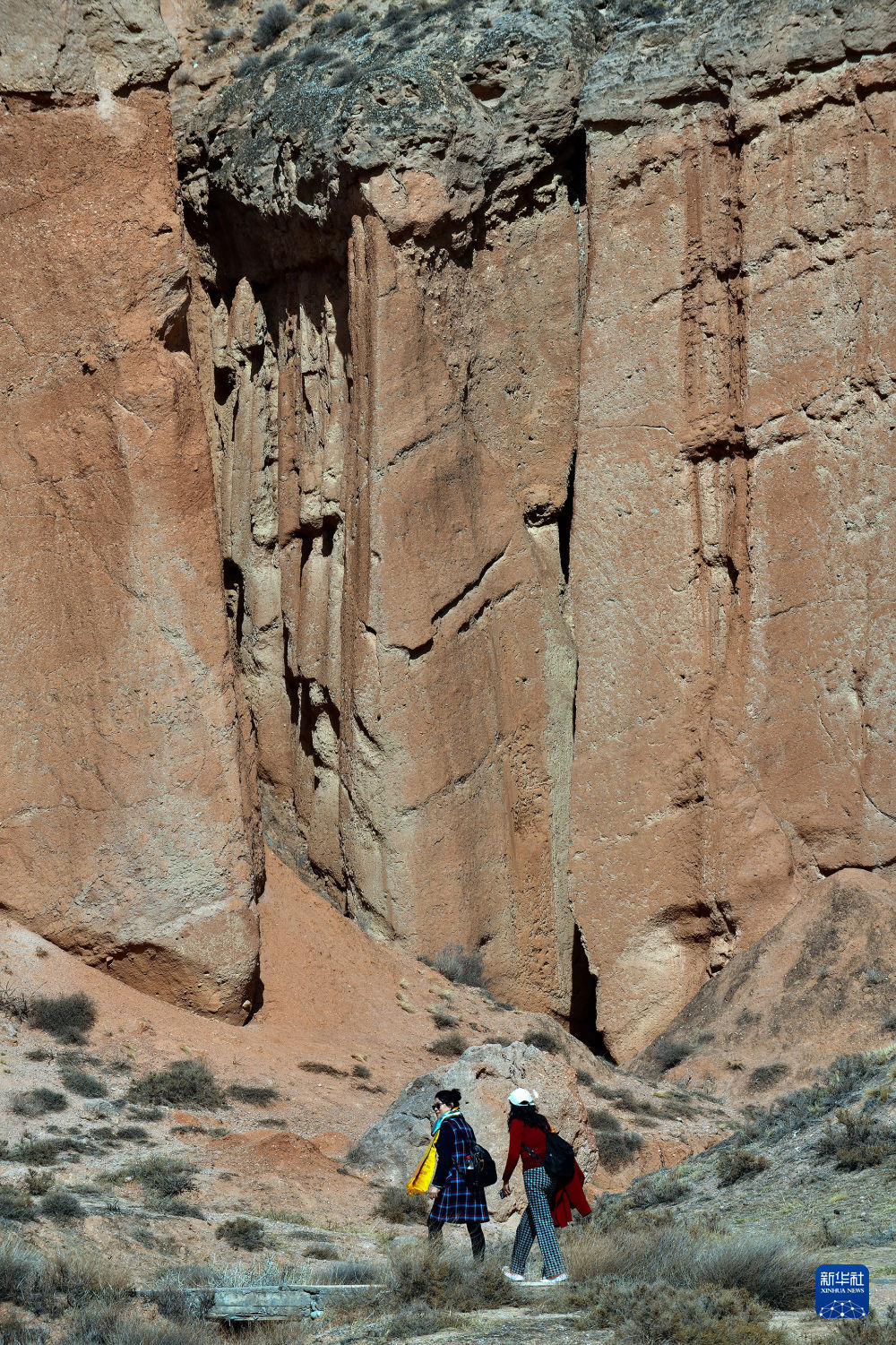 4月8日,游客行走在青海貴德國(guó)家地質(zhì)公園丹霞地貌間。新華社記者 黃豁 攝