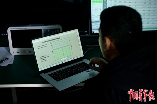 4月22日,四川稻城,一位年輕的科研人員正在查看水切倫科夫探測器陣列的實(shí)時(shí)運(yùn)行狀態(tài)。中青報(bào)·中青網(wǎng)記者 李強(qiáng) 攝