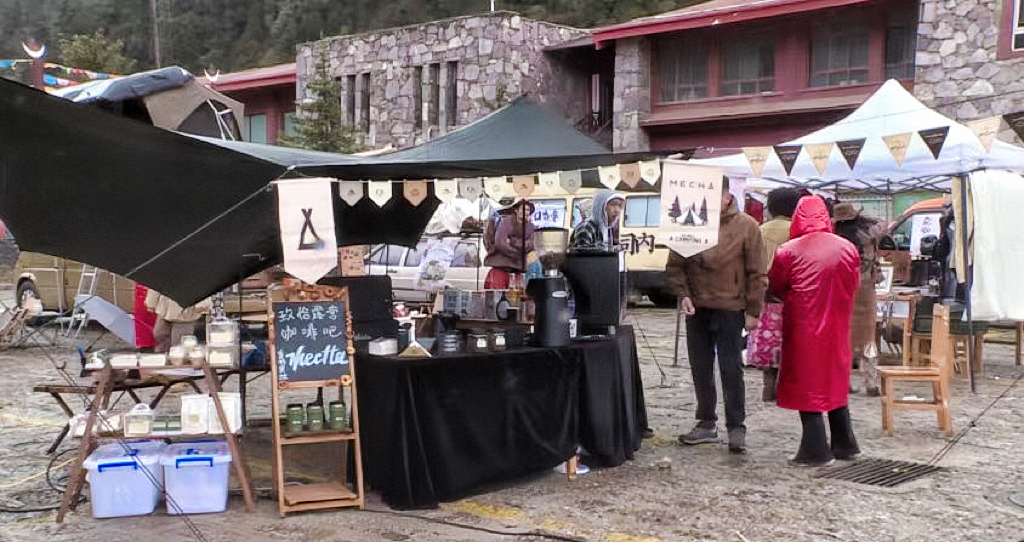 5月14日,普達(dá)措國(guó)家森林公園內(nèi),流動(dòng)咖啡車、本土手工藝、藏式美食、在地風(fēng)物于一體的露營(yíng)市集吸引游客紛紛駐足,看工藝品、喝咖啡、吃美食······游客們?cè)谙愀窭锢霹N季移動(dòng)咖啡節(jié)活動(dòng)現(xiàn)場(chǎng)體驗(yàn)咖啡、氣味、音樂、高原美景等多元的文化。