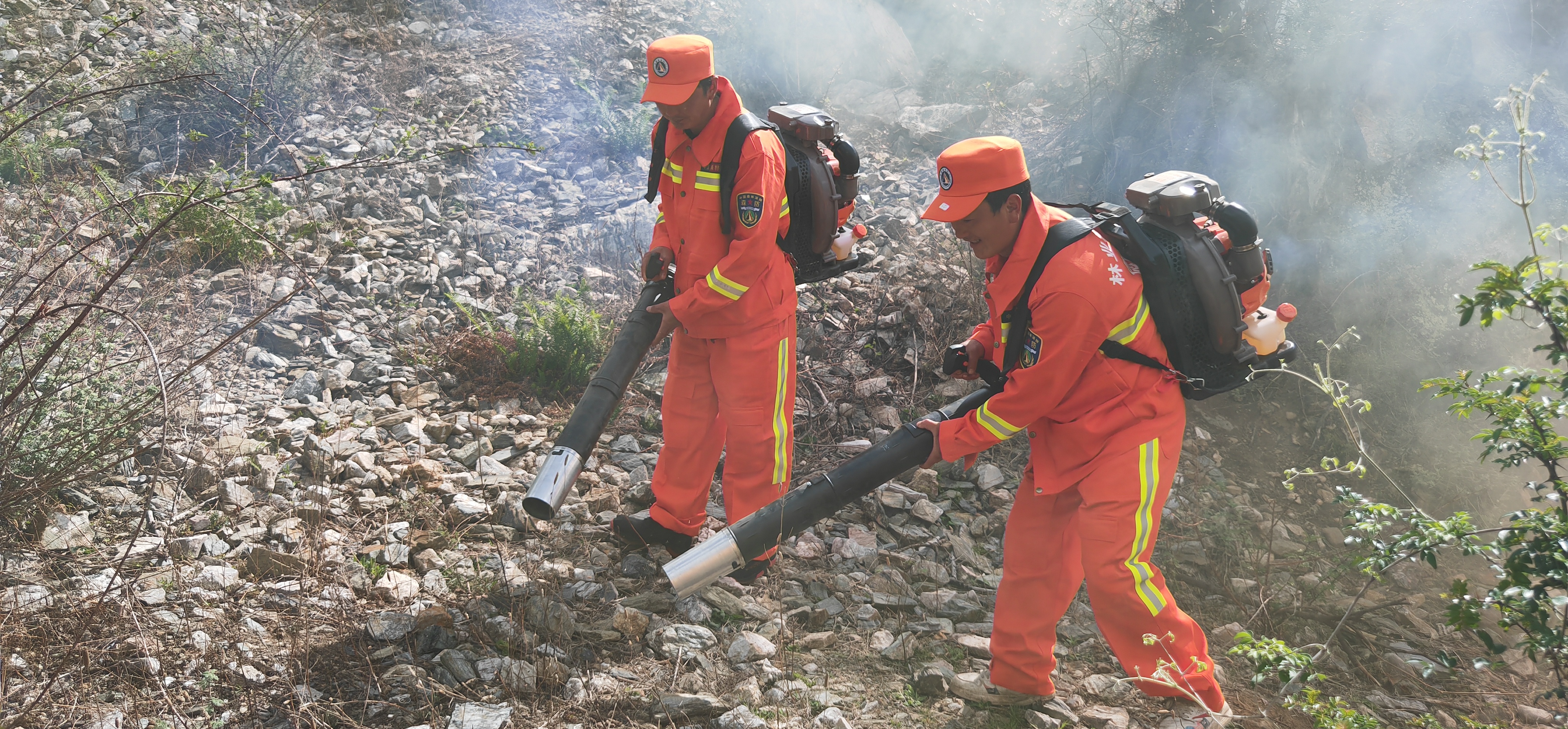 演練現(xiàn)場(chǎng),隊(duì)員們分工合作,高壓接力水泵、油鋸、風(fēng)力滅火機(jī)、往復(fù)式滅火水槍等滅火工具齊上陣,整個(gè)演練過(guò)程緊張有序。