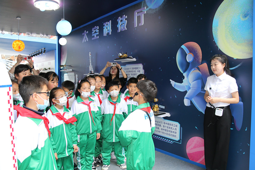 在軍工科技廳的運(yùn)20模型前,“小軍迷”熊子睿熱情地向同學(xué)們介紹起這架飛機(jī)的構(gòu)造、功能和優(yōu)點(diǎn)。[詳細(xì)]