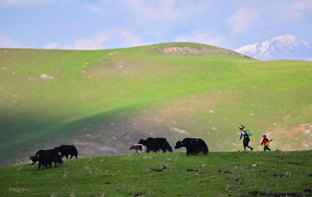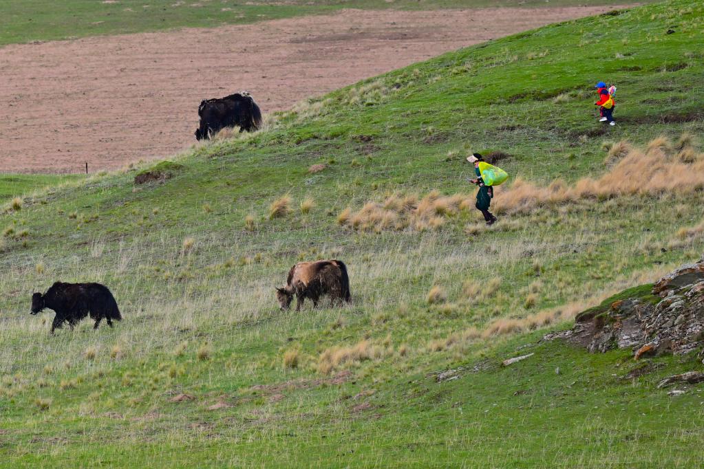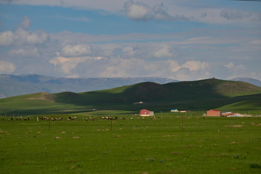 6月9日,在青海省黃南藏族自治州澤庫(kù)縣的高原草原上,當(dāng)?shù)啬撩裨诜拍痢?新華社記者 張龍 攝
