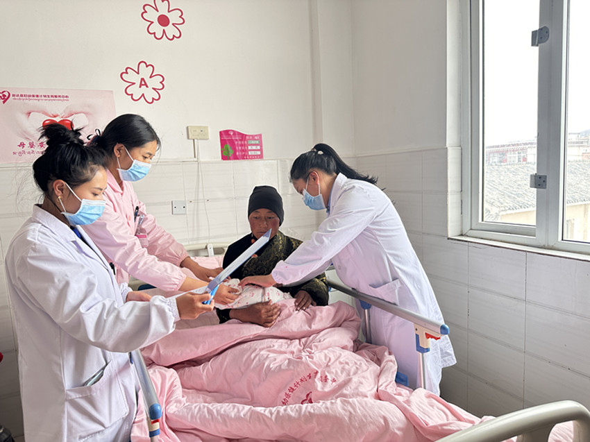 “母乳喂養(yǎng)要保持正確姿勢,防止嬰兒嗆奶?!痹挟a(chǎn)保健醫(yī)生格絨拉姆在巡房時,給產(chǎn)婦們普及正確的育兒知識并告知產(chǎn)后康復的重要性。