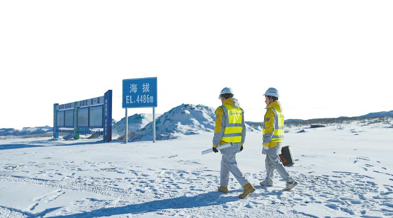 柯拉一期光伏電站建設(shè)者在低溫冰雪天氣中施工。